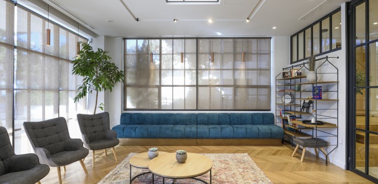 Με γνώμονα το χρώμα, συνδυασμένο με γήινους τόνους και μεταλλικά στοιχεία, δημιουργήθηκε ένα ξενοδοχείο με στόχο να μας φτιάχνει την διάθεση! Δάπεδο: Laminate Kronoswiss